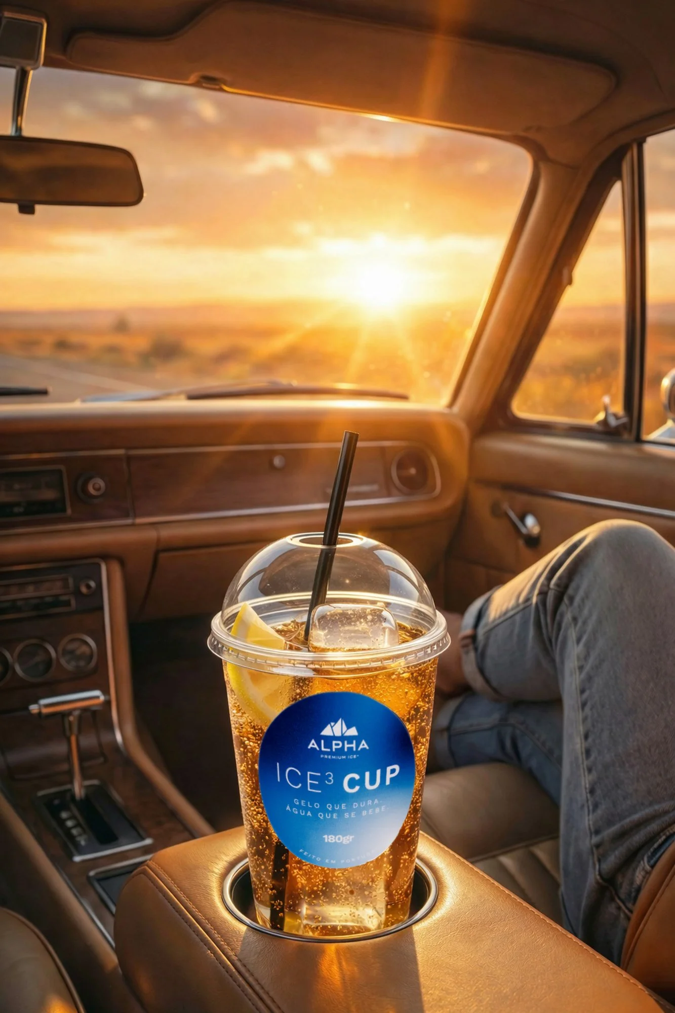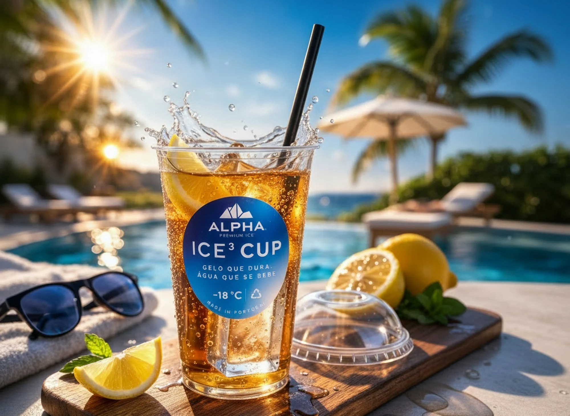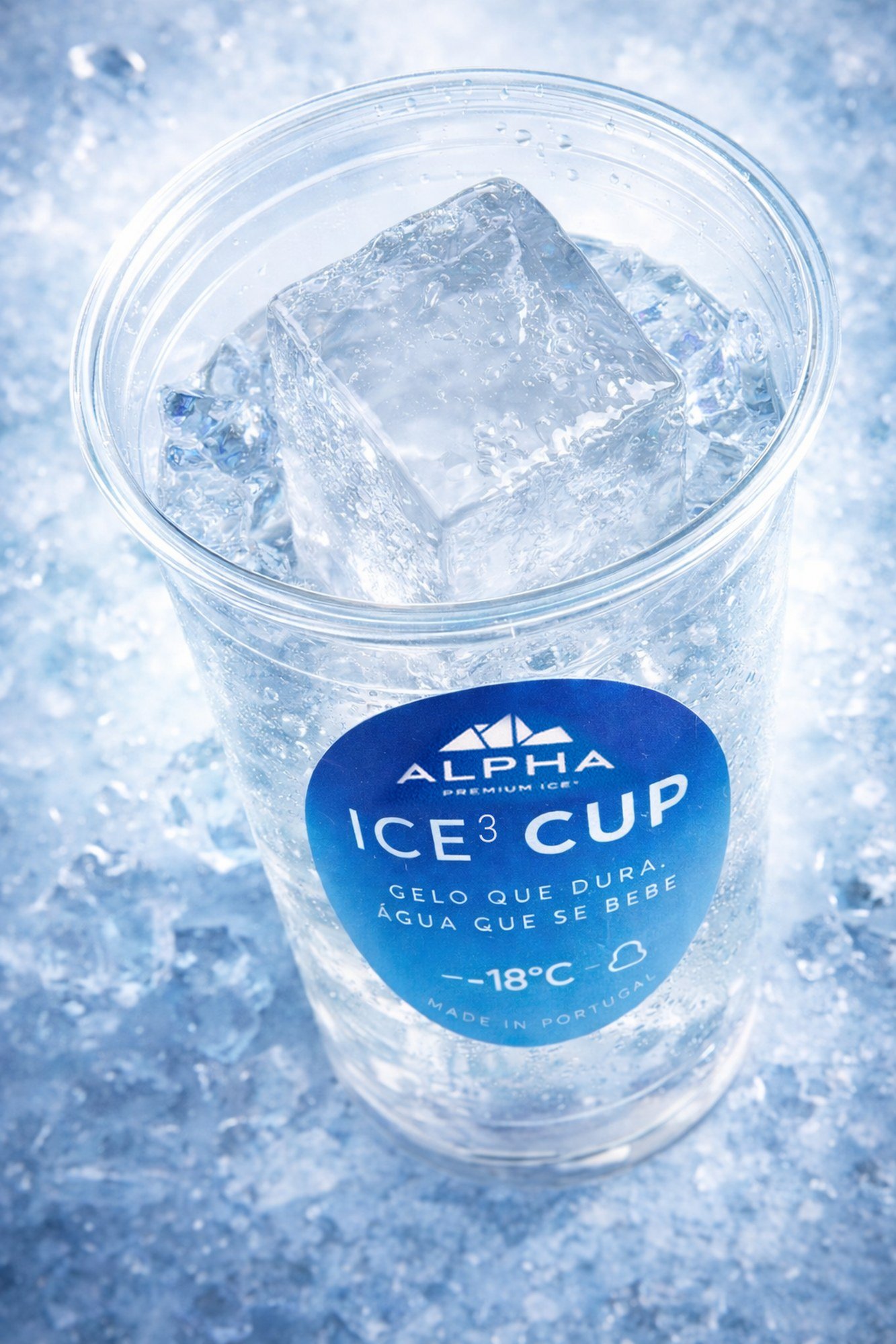 Um copo de gelo premium, pronto a levar, pronto a servir e pensado para consumo imediato.