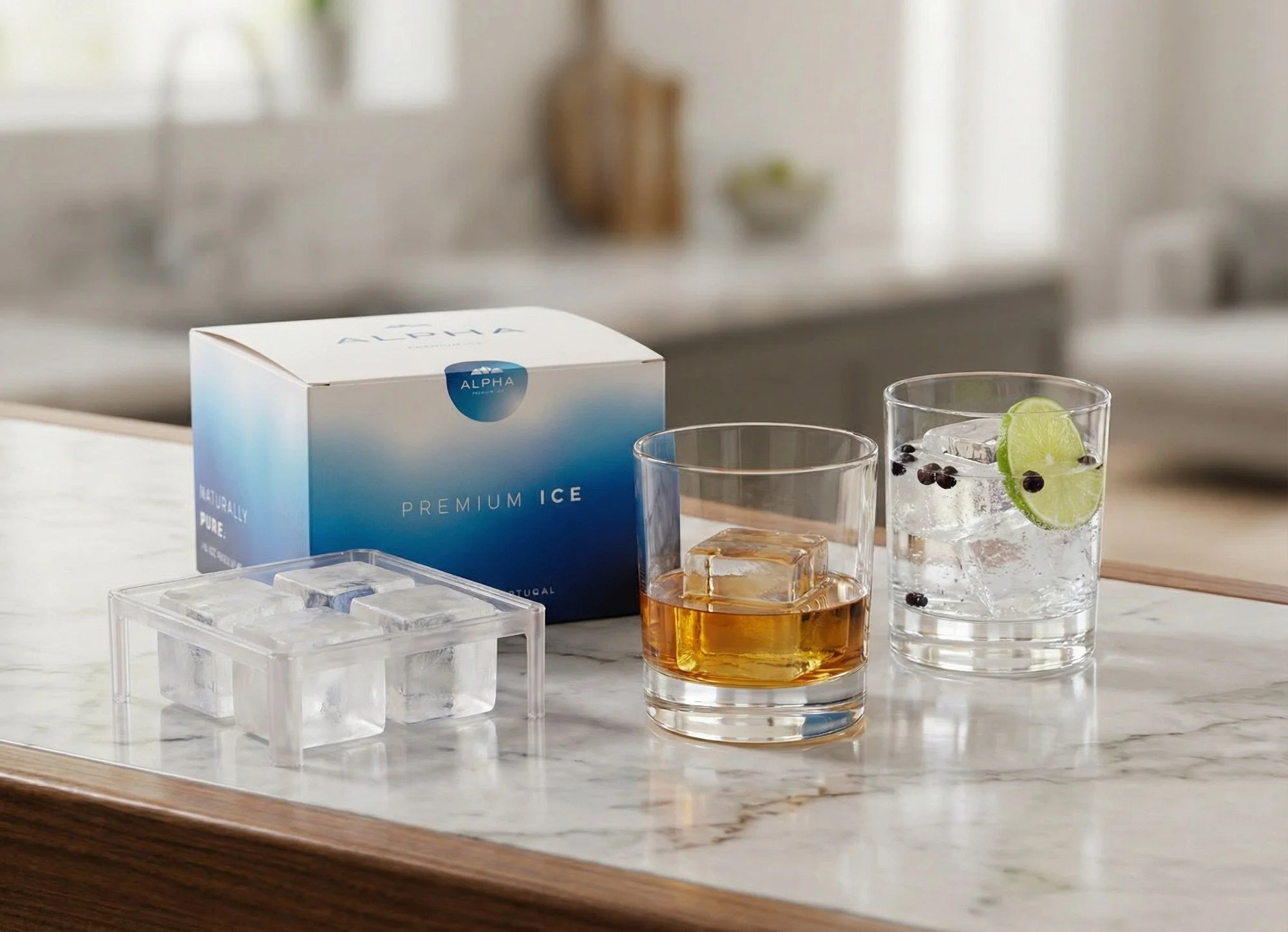 Gelo crystal clear, com baixa diluição e pronto a servir sem preparação.